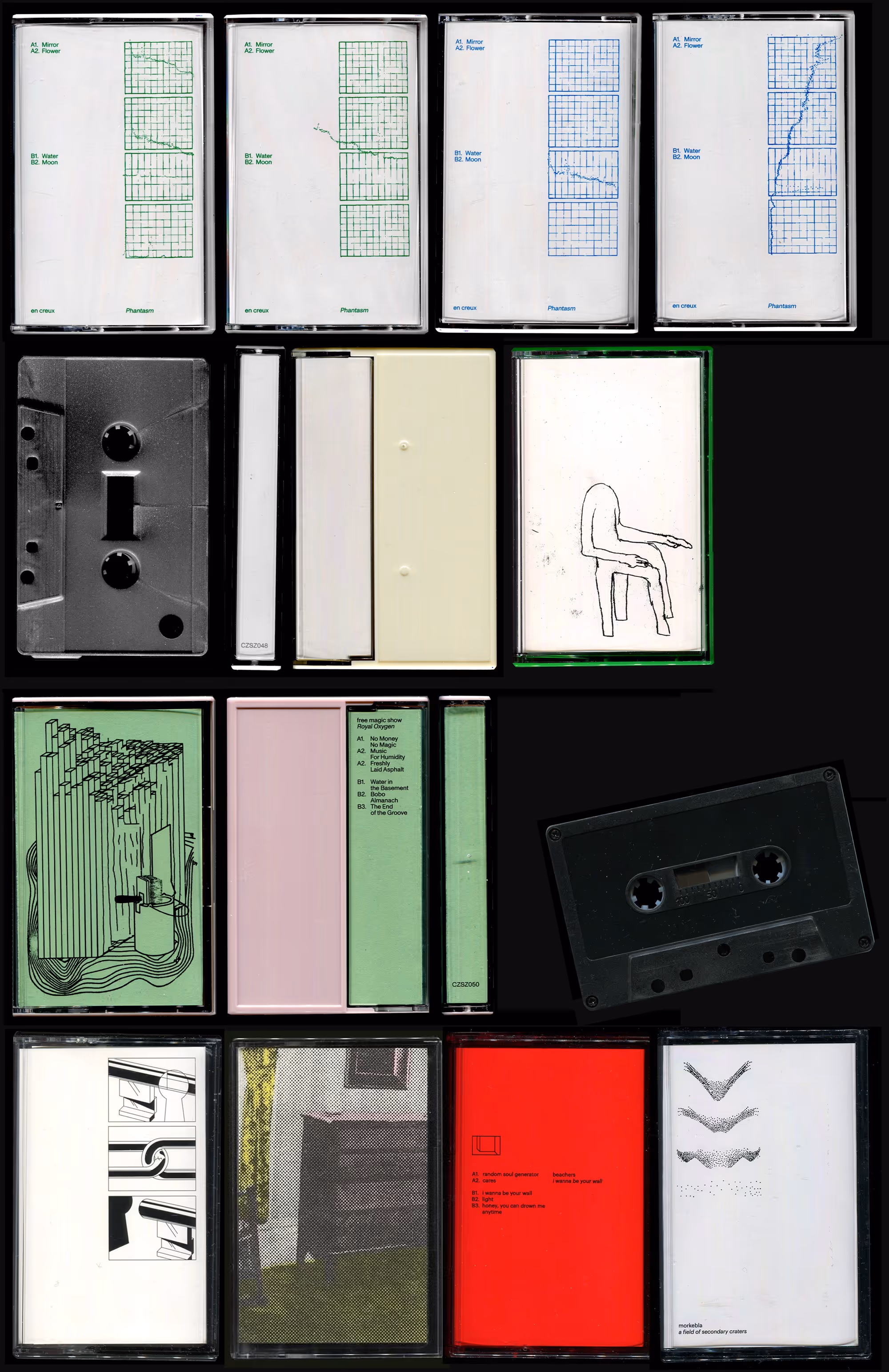 "Sosna, świerk i osika" kuratorowane przez Katarzynę Różniak-Szabelską i Post Brothers zaprojektowane z Tobiasem Wenigiem, plakat do Canti Spazializzati zaprojektowany z Glbertem Schneiderem, okładki dla Czaszka Records, plakat dla wystawy SYSTEMS OF SUPPORT kuratorowany przez Mirelę Baciak, plakat do wystawy "Duby Smalone", kuratorowane przez Katarzynę Różniak-Szabelską zaprojektowane z Tobiasem Wenigiem, Appendix logo dla Salzburger Kunstverein kuratorowany przez Mirelę Baciak