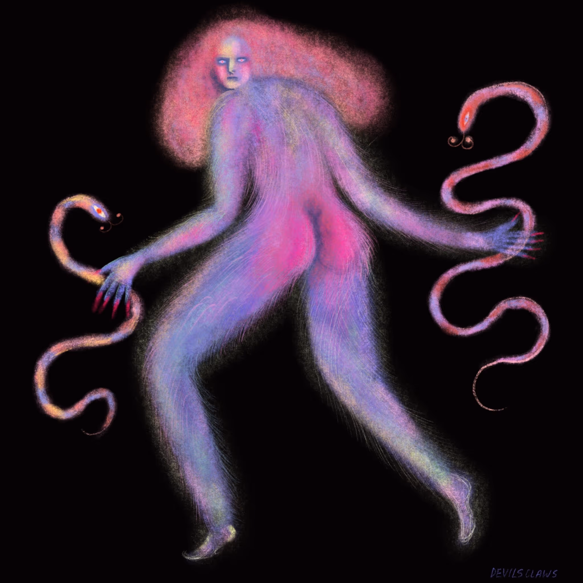 Od zawsze kochałam rysować, rysowanie i muzyka, tworzenie narracji i światów to moja najukochańsza forma kreacji. Rysuję na wszystkim - papierze, ścianach, ceramice, ubraniach. Głównym motywem moich prac jest mitologia, archetypy, tarot, symbolika, sny.